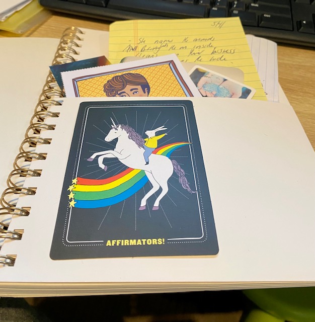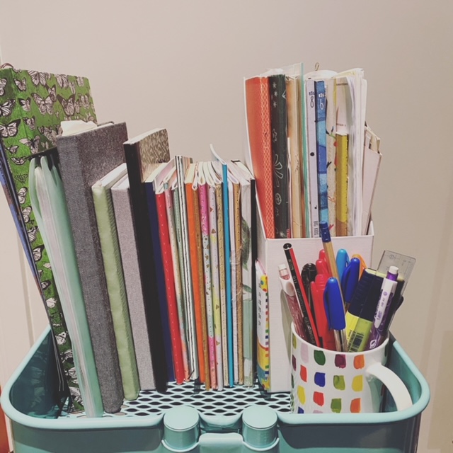 Notebooks. Of course. Only cheap ones though. It is a truth universally acknowledged that, ‘The fancier the notebook, the less likely you are to ever write in it.’ My current favourites are the Fringe Studio spiral bound notebooks that I buy at TKMAXX for $7.99. They are thick, the pages are good quality, and they have a pocket in the front that’s perfect for collecting extra bits and pieces.